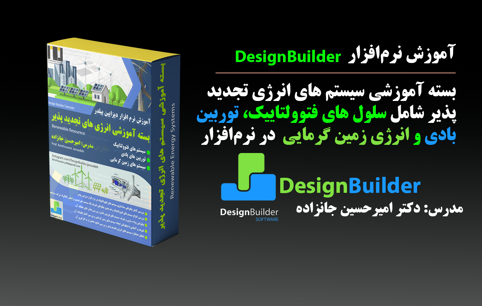 آموزش کامل شبیهسازی سیستمهای انرژی تجدیدپذیر در نرمافزار DesignBuilder شامل انرژی خورشیدی، توربین بادی و پمپ حرارتی زمینگرمایی. با تدریس دکتر امیرحسین جانزاده